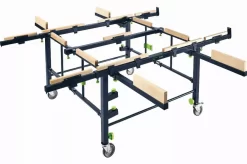 - Et pour un plus grand confort de travail, la table est rĂ©glable en hauteur jusqu’Ă 90 cm et se transforme, en combinaison avec une scie circulaire portative et un rail de guidage, en scie Ă panneaux mobile.